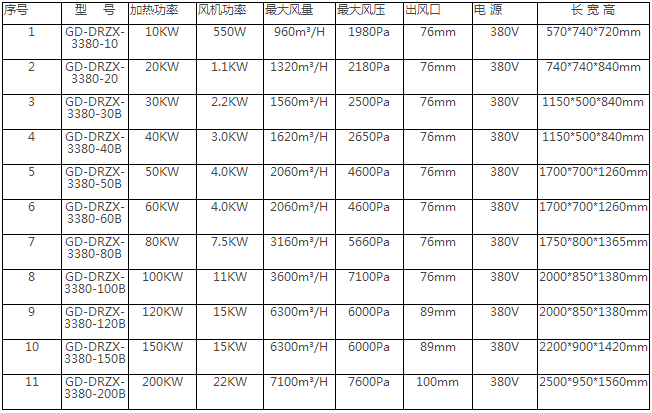 • 30KW鑄型熱風機參數表如下: